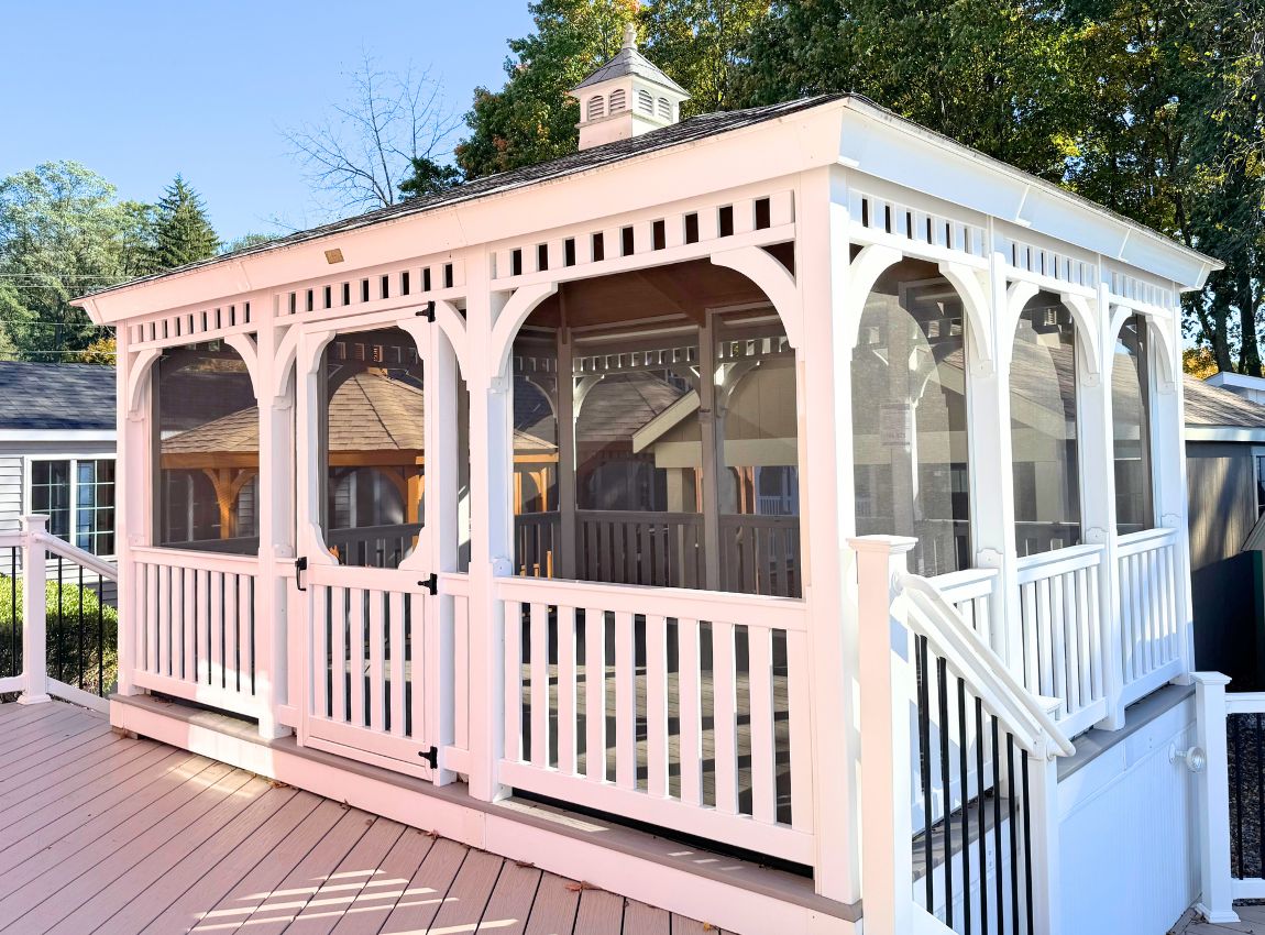 Pricing includes the following custom options: Roll form screens $4165, slate gray AZEK decking, prewire $275, extra outlet $110