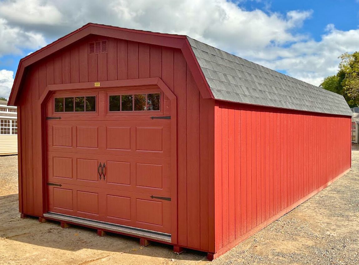 Siding Material: T1-11 Siding Color: Red Trim Color: Red Shingle Color: Black