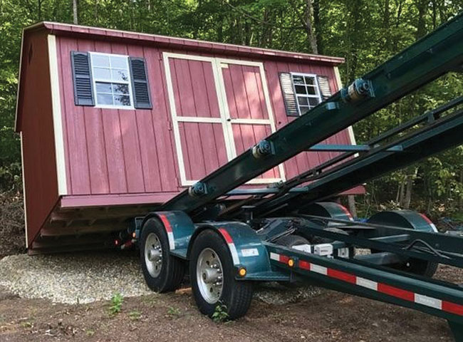 We offer two types of delivery methods: traditional truck-and-trailer and mule delivery. Both methods have their strengths and limitations. The traditional truck and trailer is better for elevated areas, and situations where spinning the structure is required. The mule is better suited for tighter spaces—such as areas with fences or trees—and for softer ground or locations near septic systems.
