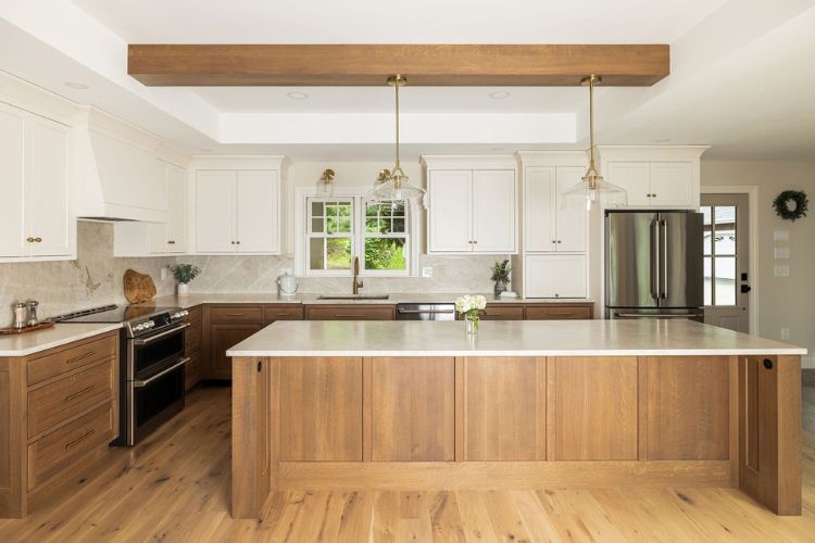 Two-tone White and Wood Kitchen Cabinets: The Perfect Blend